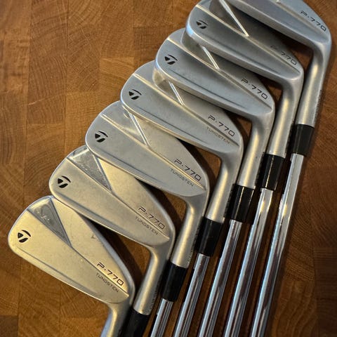 Rigtig fint sæt til begynder eller mid handicapper. 5-PW med 65 gr grafitskafter i regular flex. 5 og 6 mangler grips, men øvrige grips er i fin stand.