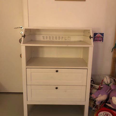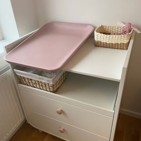 Når dit barn er ovre blealderen, kan du klappe puslepladen ned, fastgøre den med det medfølgende beslag og bruge møblet som kommode i mange år fremover.