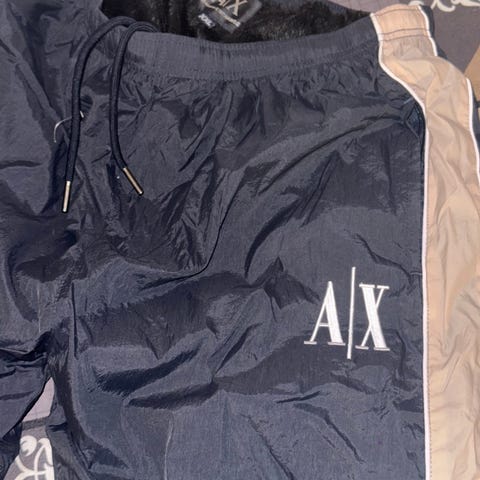 Hvid snørre i taljen så de kan spændes endnu mere ind ud over elastikken. Elastikken er intakt.