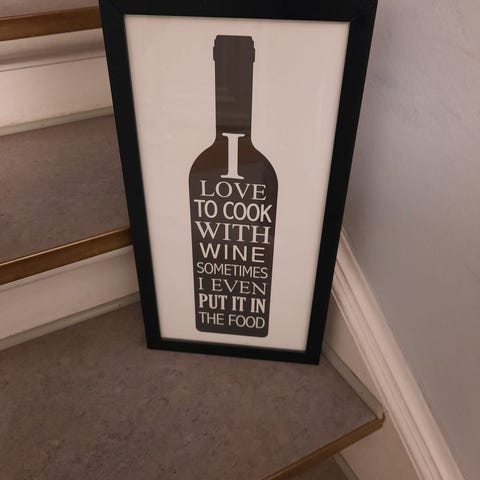 Perfekt til køkkenet, spiseområdet eller sommerhus – enkel sort/hvid stil i sort ramme.