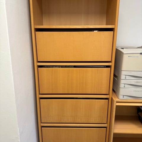 Træ skuffeskab/dueslag/arkivmøbel med 6 hylder til opbevaring. Skabet er fremstillet i træ og har en naturlig træfarve. Velegnet til opbevaring af dokumenter, papir eller små genstande.