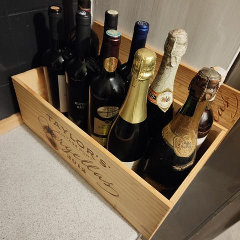 Sættet indeholder forskellige flasker vin med varierende typer og mærker. Se billede. Flaskerne inkluderer mousserende vin, hvidvin og rødvin i standardstørrelser. Farverne på vinene spænder fra lys til mørk afhængigt af typen. Materialet er glas, og produkterne er velegnede til forskellige smagspræferencer og lejligheder.