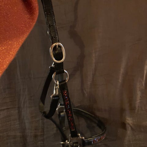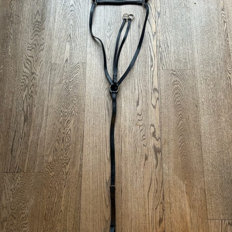 Martingal i sort læder med metalringe og justerbar rem, fra Horze.