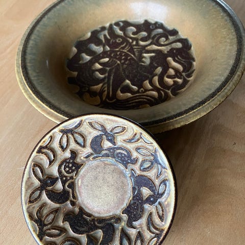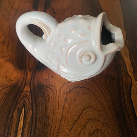 Michael Andersen keramik græskar kande/vase hvid farve med en unik form. Vasen er lavet af keramik og har en dekorativ og kunstnerisk udformning. Velegnet til brug som dekoration , kande eller til blomsterarrangementer. Mål: H 8,L 11, Br 9,5 cm.. pris 400.