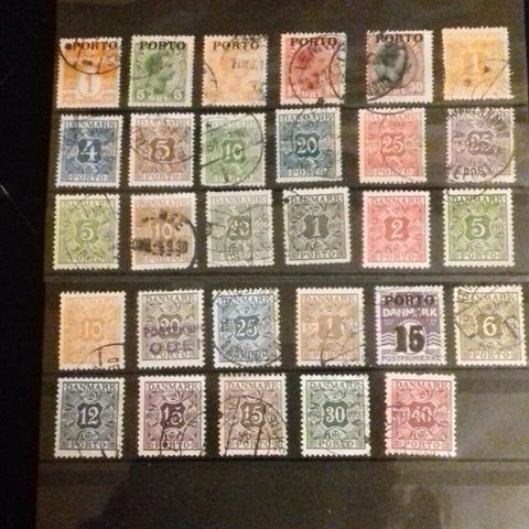 Danmark, stemplet, Porto mærker stemplet., Danmark, stemplet, 1 øre Orange , 5 øre brun, 10 øre grøn, 20 øre blågrøn, 25 øre rød og 1 øre grøn sort