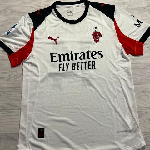 Puma AC Milan fodboldtrøje i størrelse S til mænd. Trøjen er sort med røde og grønne detaljer og er designet til fodboldbrug.
