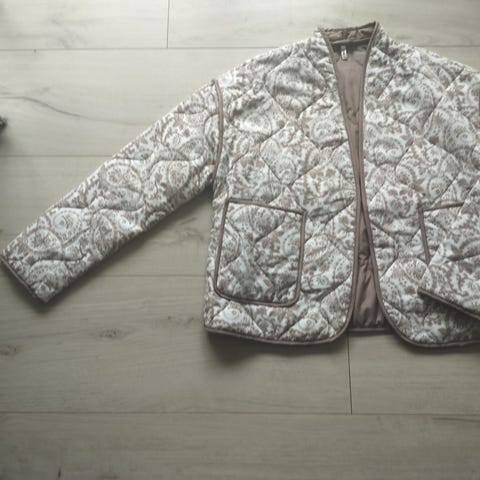 Quiltet til under knæ jakke i sort med lynlås og 2 sidelommer m/lynlås. Fra MSCH Copenhagen.