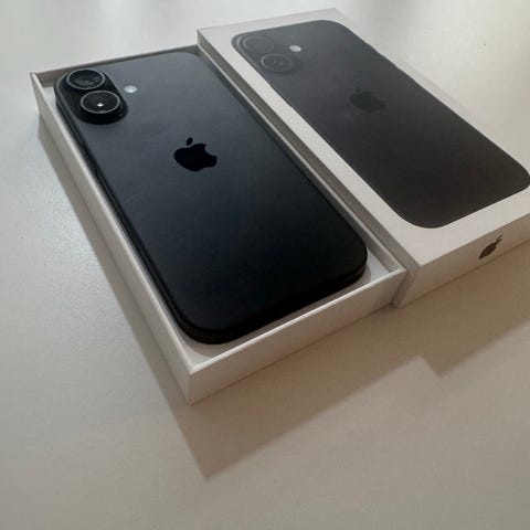 Iphone 16 i sort med 128gb i super god stand batteriet er stadigvæk godt inkl æske og opladerkabel.