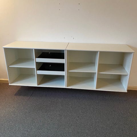 Hvid Mistral tv-bænk med sorte stoflåger sælges. Mål: