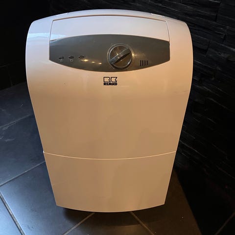 Affugter ETF 320 – Remko. Maks. affugtningskapacitet pr. 24 timer 30 l, Lufttilførsel 190 m³/h, Tilslutningsspænding 230 V, Niveauindikator. Producerer varme under affugtning. Højde 620 mm, Bredde 400 mm, Dybde 300 mm.