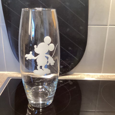 &Tradition Minnie Mouse figur i rød med hvide prikker, gulne sko og sort hoved. Figuren viser Minnie Mouse med rød kjole og sløjfe, lavet i malet materiale. Figuren kan bruges som dekorationsobjekt.