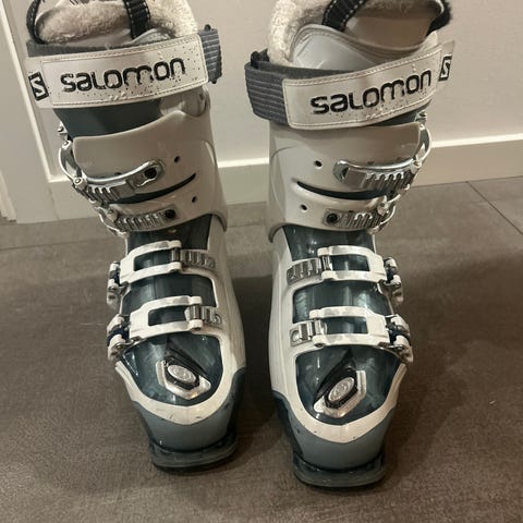 Salomon dame skistøvler i hvid farve. Skistøvlerne har blødt for indeni.