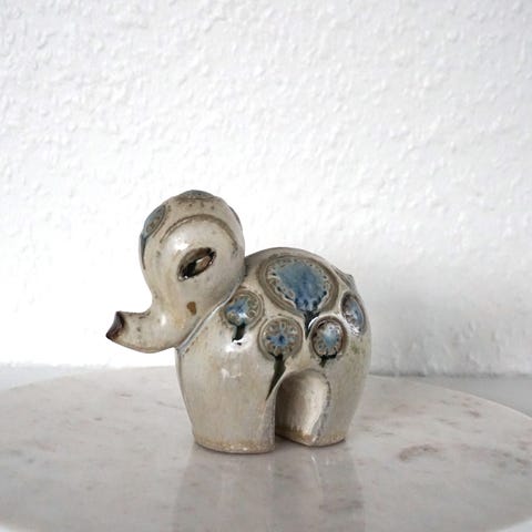Fin lille vintage figur af en elefant. Keramik. Designer Britt-Louise Sundell for Gustavsberg. Figuren er en del af Ringo serien, som blev produceret i 1960'erne.