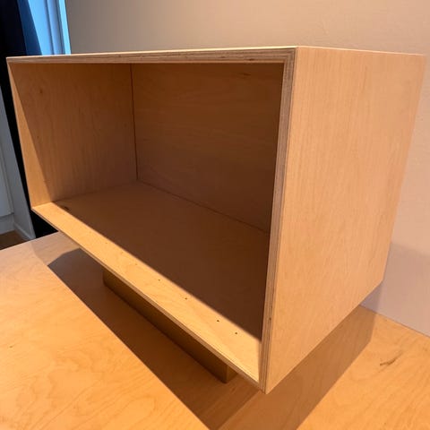 KUBIK reol fra trævarerne bestående af 3 stk. B. 35 x h 35 x d 40 cm væghængte skabe i sort, det ene med 3 skuffer plus stort speciallavet spejl b. 83 x h 130 cm med sort ramme.