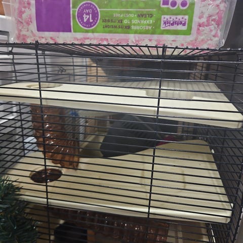Buret er pænt og velholdt, og sælges kun samlet. Perfekt til både ny hamster-ejer eller dig, der vil opgradere dit nuværende setup.
