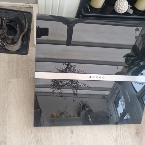 Emhætte i hvid uden synlige brugsspor.