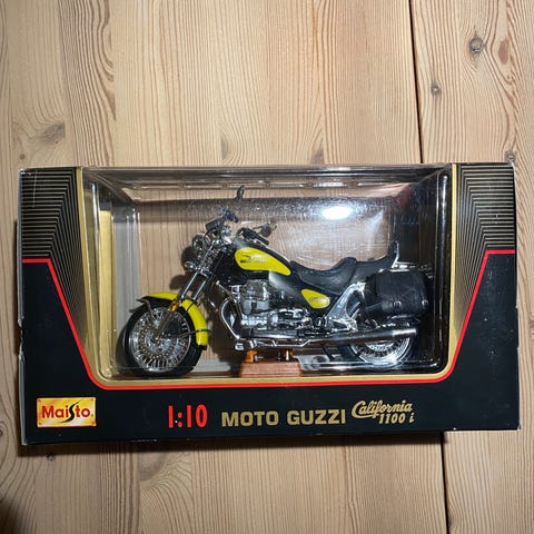 Ny Maisto BMW R 1100 R modelmotorcykel i skala 1:10 med rød farve. Modellen er detaljeret og leveres i original emballage.