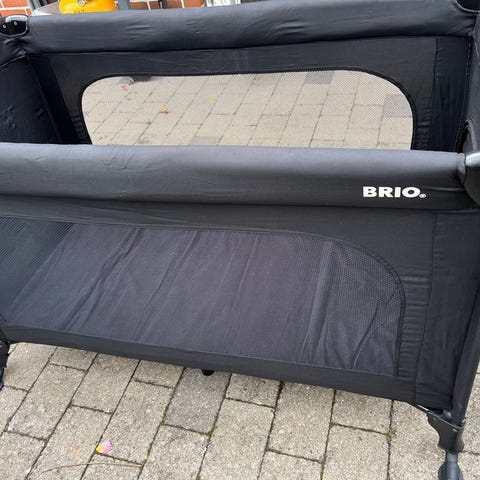 BRIO Rejseseng i sort farve. Designet til børn og egnet til rejsebrug. Sengen kan foldes sammen for nem transport og opbevaring. Skummadras medfølger.