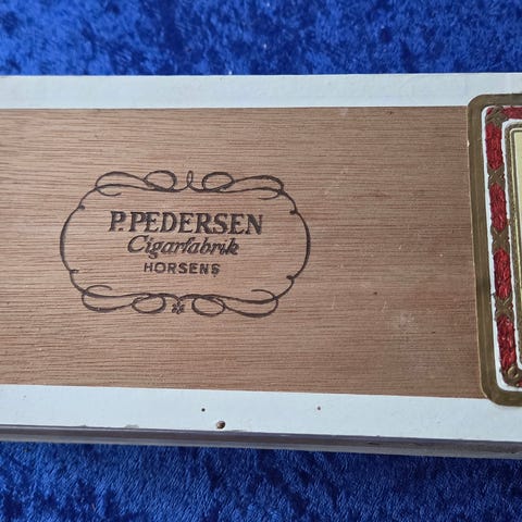 Pæn cigar kasse fra C.W. Obel (Collegio) med indlæg og lille søm ved lukkelse.