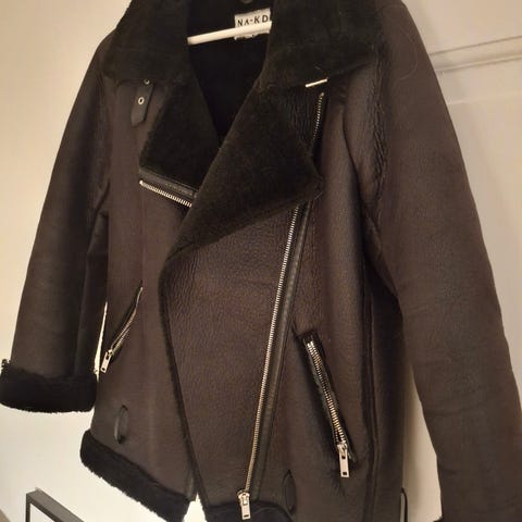 Vintagejakke i god stand. Enkel model med fine detaljer. Jakken er 80cm lang fra nakke til bund.