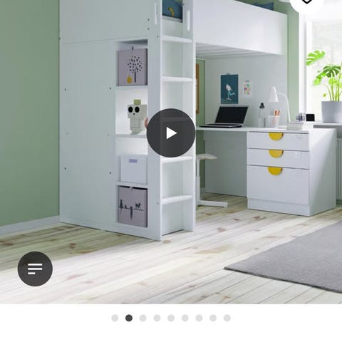 Højseng med opbevaring og skrivebord.