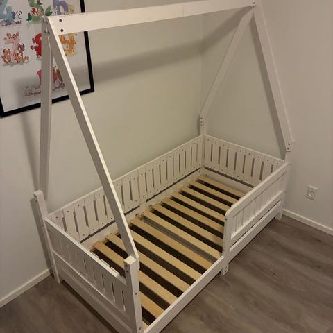 Junior husseng i ubehandlet træ. Er lidt høj (ca. 40cm), så der er plads til opbevaring under.