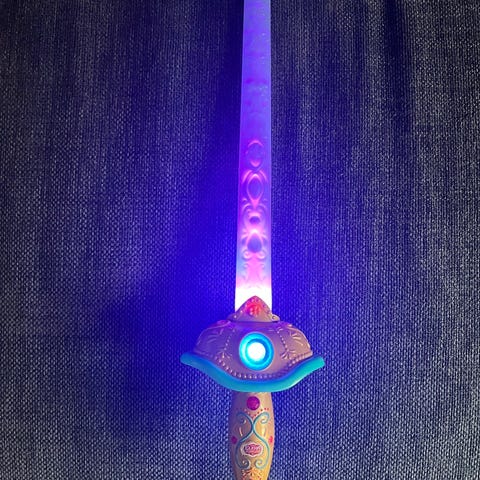 Disney Elena børneguitar fra Disneyserien Elena. Længde 52 cm. Med lys og lyd (temamelodier fra serien). Sælger også et scepter fra Elena.