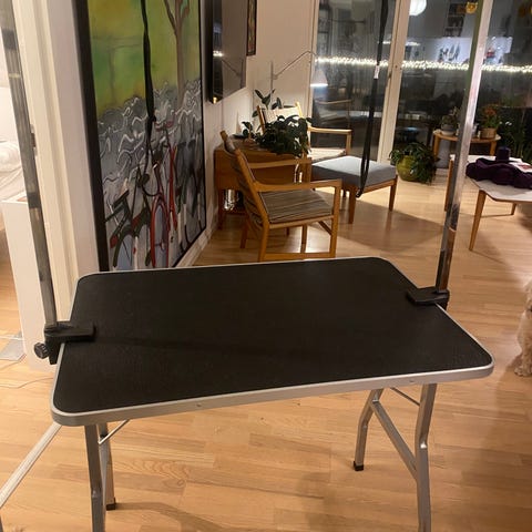 En ekstra skridsikker måtte er limet på gummioverfladen af bordplade.