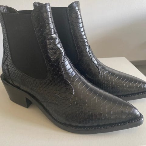 De er oprindeligt købt på YOOX og kun brugt to gange. Har en behagelig hælhøjde og er true to size.