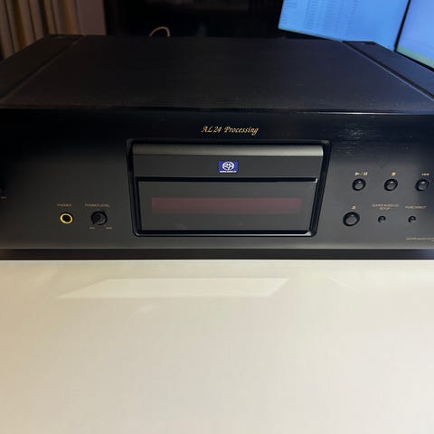 Lækker Denon CD-afspiller, der er meget velholdt, med minimale brugsspor. Der er 2 analoge udgange, en fast og en variabel. Der er også 2 digitale udgange, en optisk, og en coaxial. Den er blevet renset og testet. Der medfølger original fjernbetjening og manual.