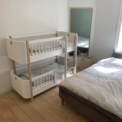 Det er Oliver furnitures Wood original køjeseng, hvid/eg.