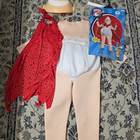 I den meget pæne ende af god men brugt. Vi har pillet nogle skumpuder af masken, da de generede, når den var på. Ellers er kostumet komplet intakt.