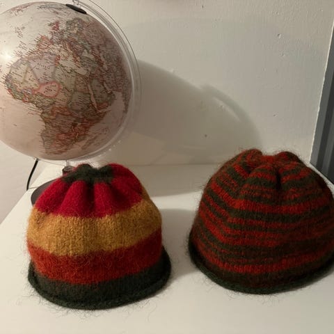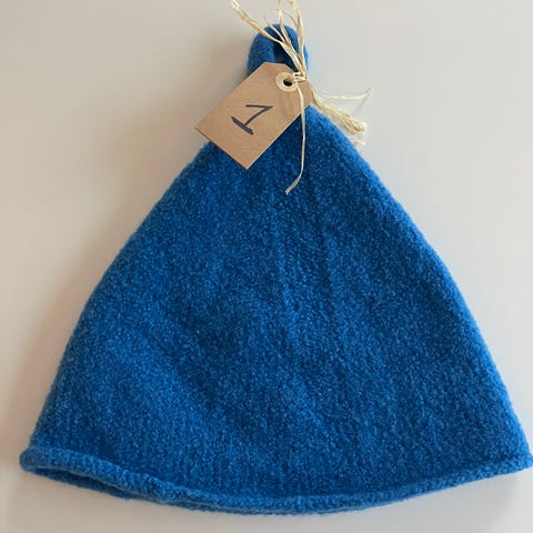 Håndlavet kvalitets sauna hat i filtet uld. Hatten har aldrig været brugt og sælges kun da jeg ikke får den brugt. Farven er hvid og der er påsyet små dekorationer i filtet uld.