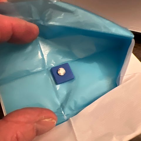 Ægte diamant, labgrown, 0,55 ct, Farve G og Klarhed VS2. Certifikat medfølger og faktura udskrives. Har flere størrelser. Bare spørg. Kommer i smuk gaveæske. Vil du have den i en ring klare jeg også det. Få et tilbud.