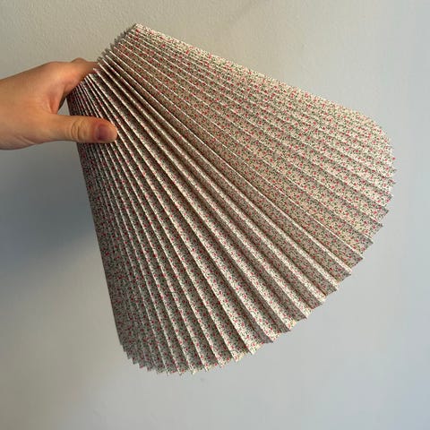 Kan afhentes i Roskilde eller Høje Taastrup. Diameter 16 cm (bund) og 5 cm (top). Højde 10 cm. Skærmen er 12 cm langs ydersiden fra top kant til bund kant.