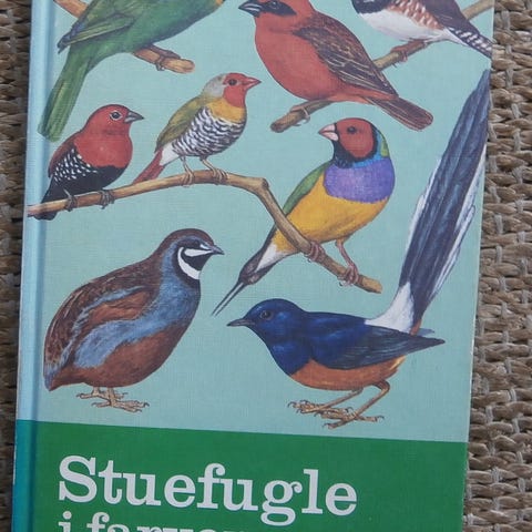 Patineret bog, stuefugle I farver af G. Mandahl-Barth, med farvetavler af Henning Anthon. Politikkens forlag 1957.