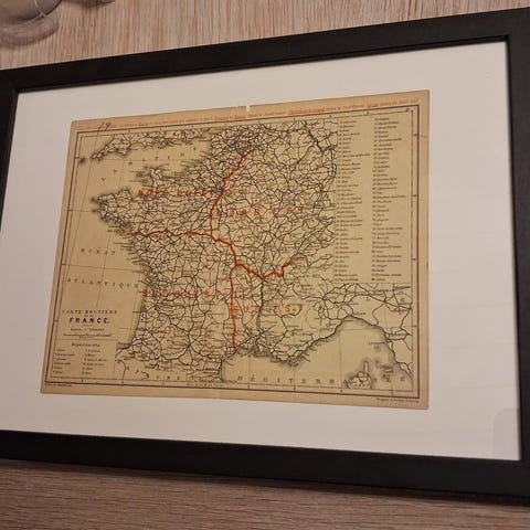 Måler ca 21x21. Monteret i hvid metal ramme. Frankrig. Middelhavet