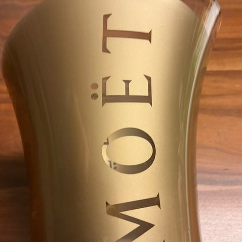 Gammel fransk champagnebowle fra 50'erne, Moët & Chandon - fransk vintage, Super cool og dekorativ gammel fransk champagne køler / champagne bowle fra det hæderkronede gamle champagnehus Moet et Chandon. Champagnekøleren fremstår i lækker tin med en helt perfekt patina! Med champagneproducentens logo indgraveret og den karakteristiske sløjfe. En stor og rummelig køler med god plads til 3-4 champagneflasker. En virkelig imponerende flot champagnekøler!