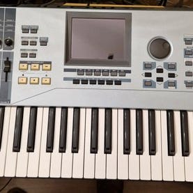 Crumar Performer elektrisk keyboard med 61 tangenter og flere farvede knapper til lydstyring og funktioner. Instrumentet har et klassisk design i sort og er velegnet til musikproduktion og optræden.