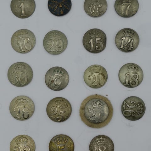 Gule bataljonsmærker - knapper m.m. lot med 15 stk