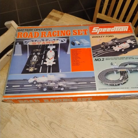 Klassisk Speed Trax slotcar-racerbane fra 1970–80’erne.