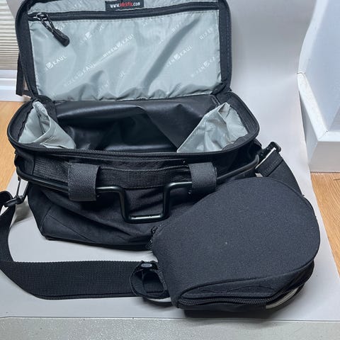Abus cykeltaske helt som ny, sort med håndtag og justerbare stropper for montering på bagagebærer. Tasken har flere rum, herunder et mindre lynlåslomme foran.