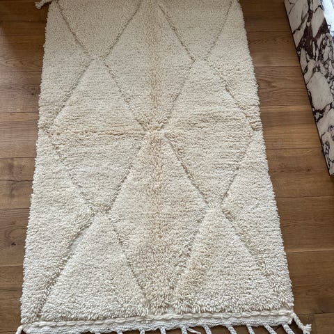 Klassisk smuk Beni Q i ren blød uld. Købt til min datters værelse men har aldrig fået det brugt. Ingen brugsspor.
