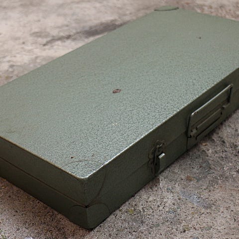 Gammel metal kasse til dias billeder - Plads til 252 billeder.