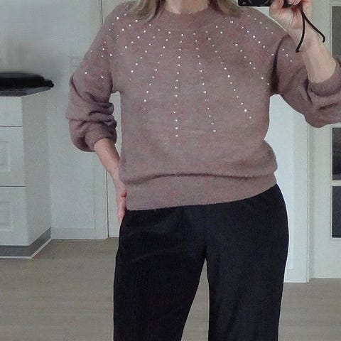 Pæn mørkeblå lun sweater fra Jacquline De Young,fin til de kolde dage.