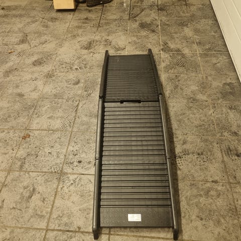 Foldbar rampe som sikrer at hunden kommer sikkert ind og ud af bilen.