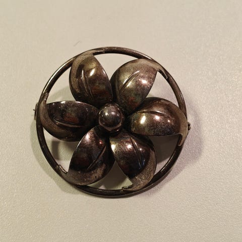 Super fin broche med kant af ægte sølv (dog uden stempel, men testet)