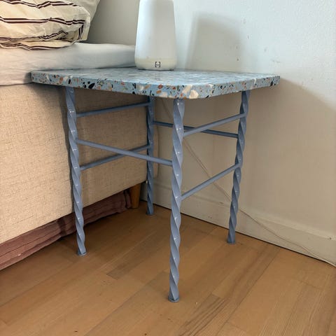 Smukt maritimt sofabord i egetræ med massiv glasplade sælges pga flytning.