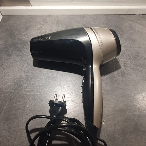 Remington hårtørrer i perlemorsfarve med gyldne kanter. Super effektiv og kraftfuld føntørrer med flere indstillinger. (2200 w) er super god til hurtig tørring af hår og fungerer perfejt