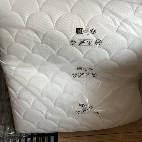 Er købt sammen med udstillingsseng så er lidt smudset i fodenden men der har aldrig været sovet på den. Fremstår helt ny alle andre steder. Sælges fordi 2-delt topmadras er købt.